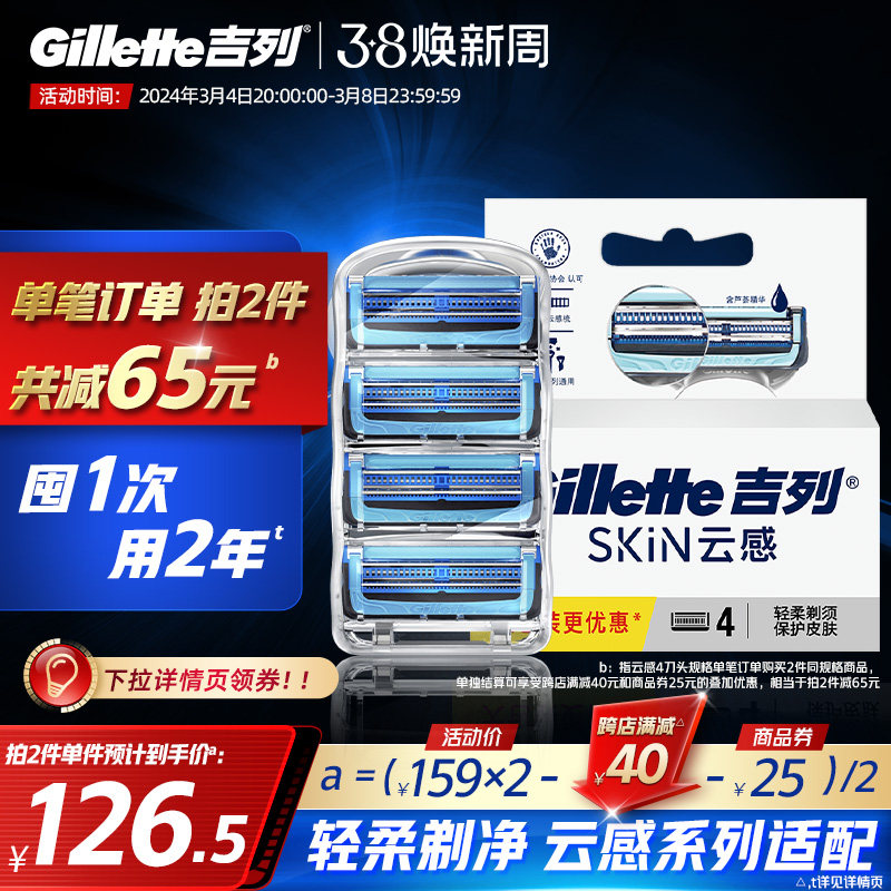 吉列云感小云刀刀片手动剃须刀刮胡刀原装刀头2刀头非吉利非电动