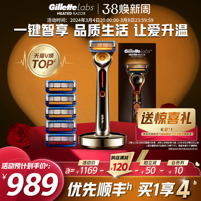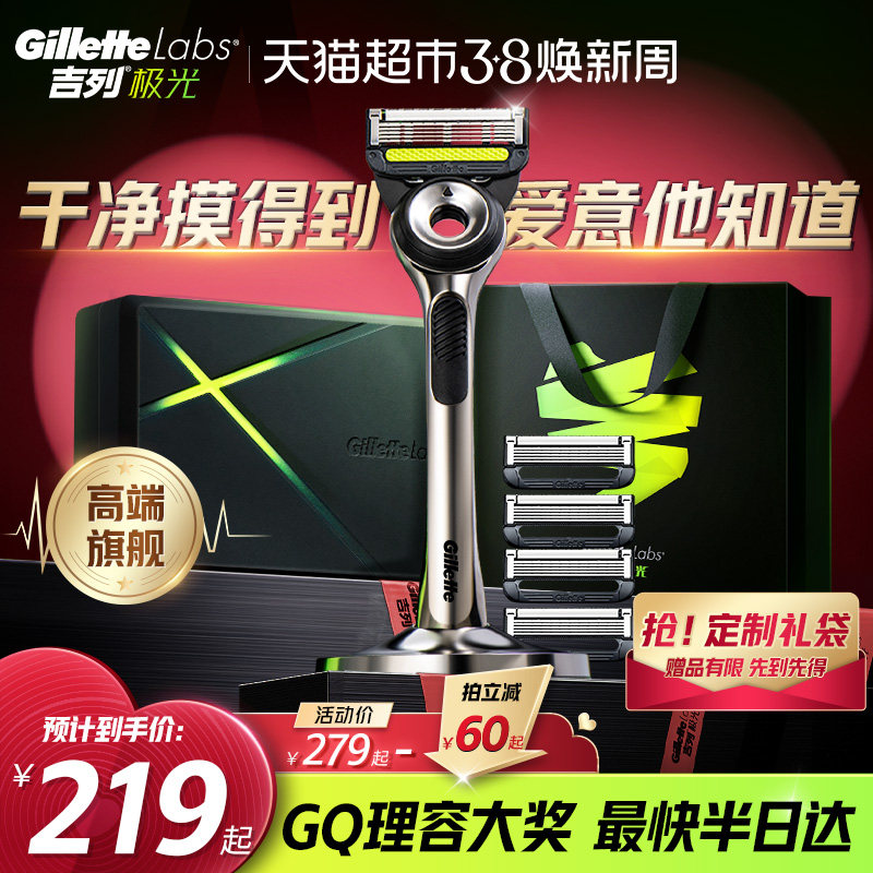 【38礼遇】吉列LABS热感剃须刀男士手动发热石剃胡刀刮胡刀礼盒