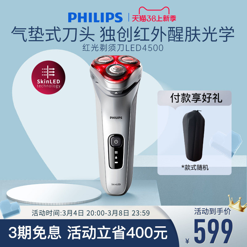 飞利浦男士红光剃须刀电动胡须刀智能护肤刮胡刀官方正品LED4500