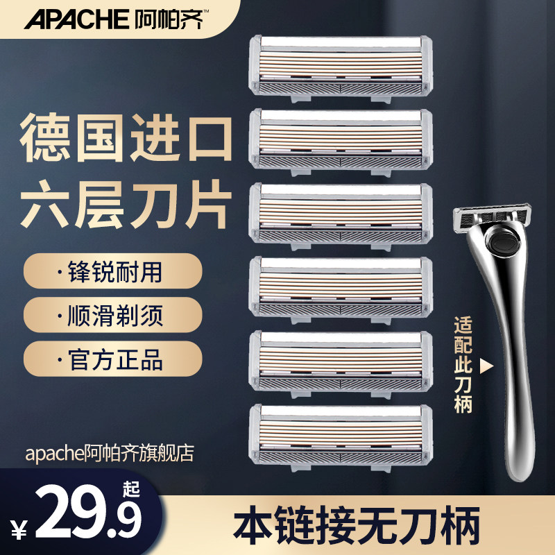 阿帕齐手动剃须刀德国6层进口刀片刀头阿帕奇刮胡刀手动剃胡子刀