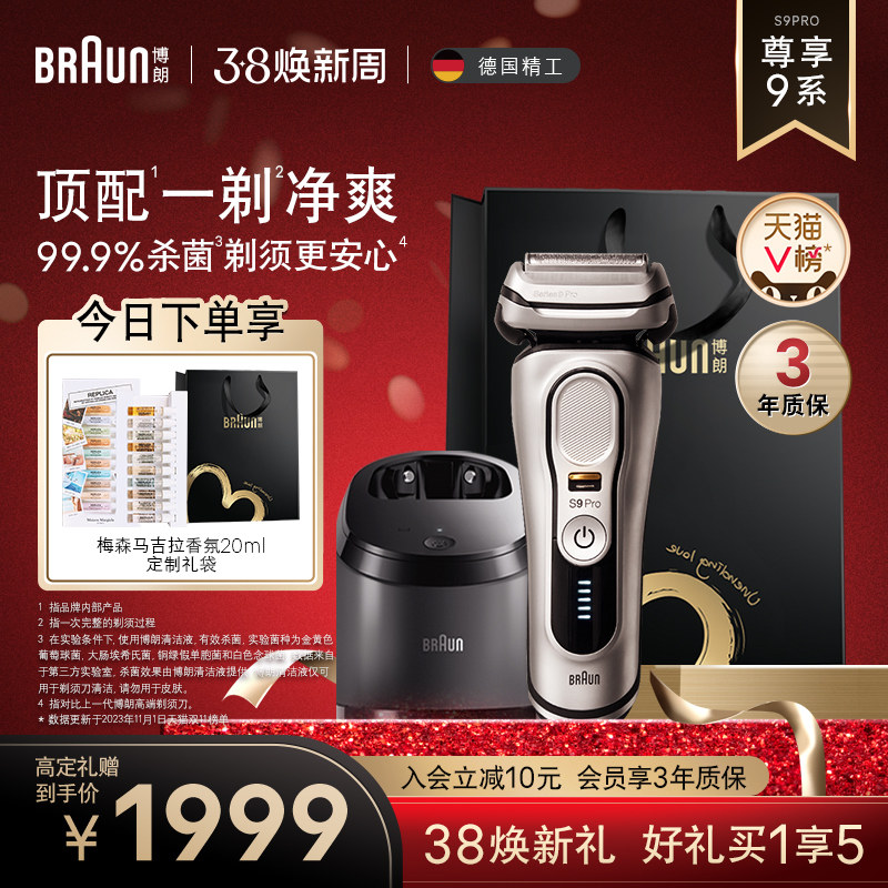 博朗9系巅峰版9667CC电动剃须刀 干湿双剃往复式刮胡刀礼盒送男友