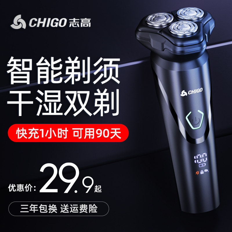 志高剃须刀男士电动刮胡刀充电式胡须刀全身水洗智能须刨剃胡刀子