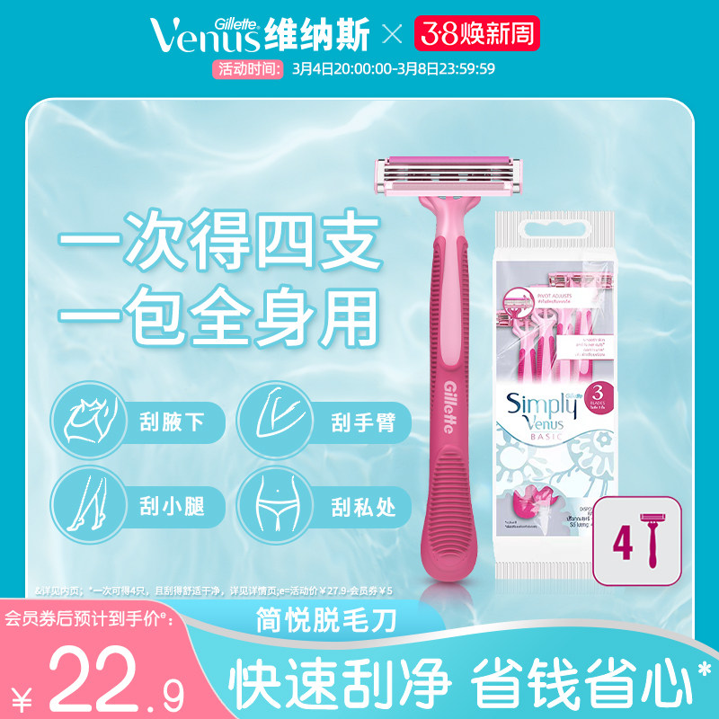 吉列venus维纳斯女士脱毛刀简悦手动刮毛刀剃毛刀实惠入门四支装
