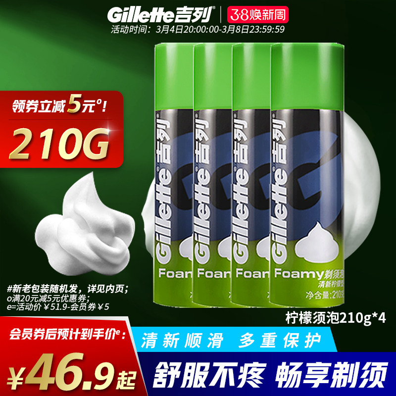 吉列剃须泡沫刮胡刀男士剃须膏刮胡子史莱姆非吉利须泡210g*2瓶装