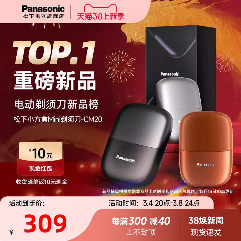 松下小方盒mini电动剃须刀迷你便携刮胡刀双刀头CM20情人节送男友