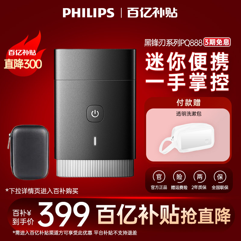 飞利浦男士电动剃须刀迷你车载便携刮胡刀胡须刀礼物官方PQ888