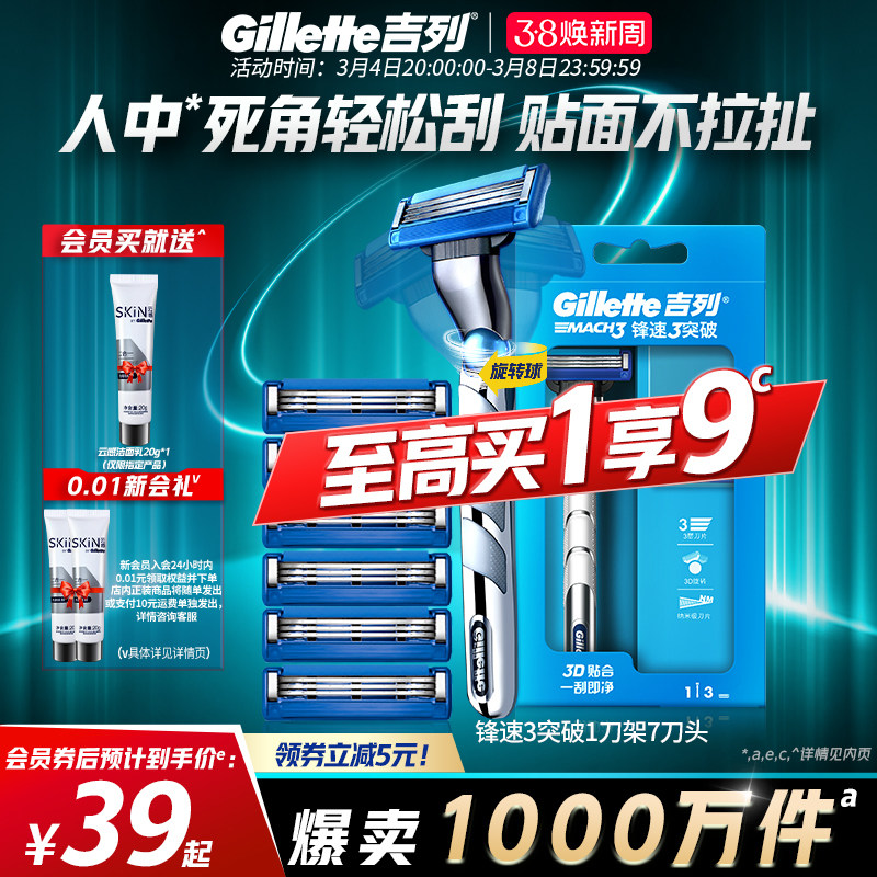 吉利锋刃剃须刀官方旗舰男士手动刮胡刀剃刀头3层刀片新款剃泡沫