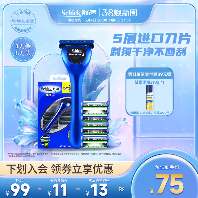 Schick舒适剃须刀手动刮胡刀蓝超凡加滑刮脸刀ultra双层润滑刀片