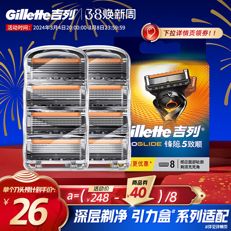 吉列剃须刀片锋隐致顺非电动手动刮胡刀刀头8刀片/头组合非吉利