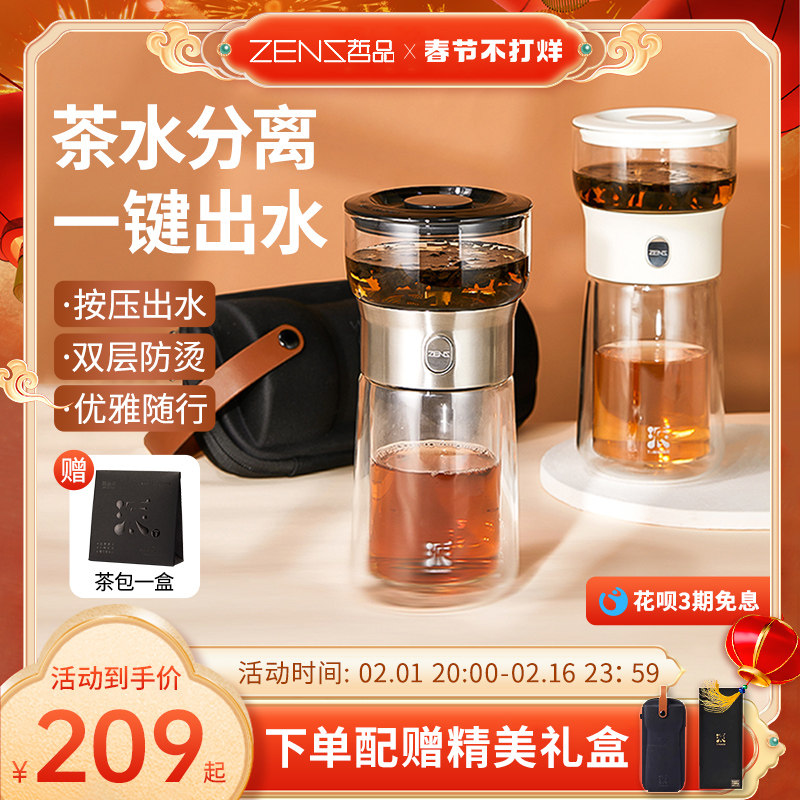 茶杯茶水分离高档个人专用喝泡茶杯子男女士办公室玻璃具观山水杯
