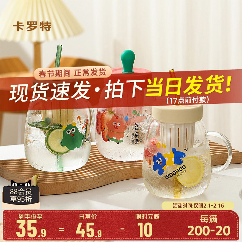 乐扣乐扣玻璃杯泡茶水杯家用耐热茶水分离杯子男士花茶女生办公室