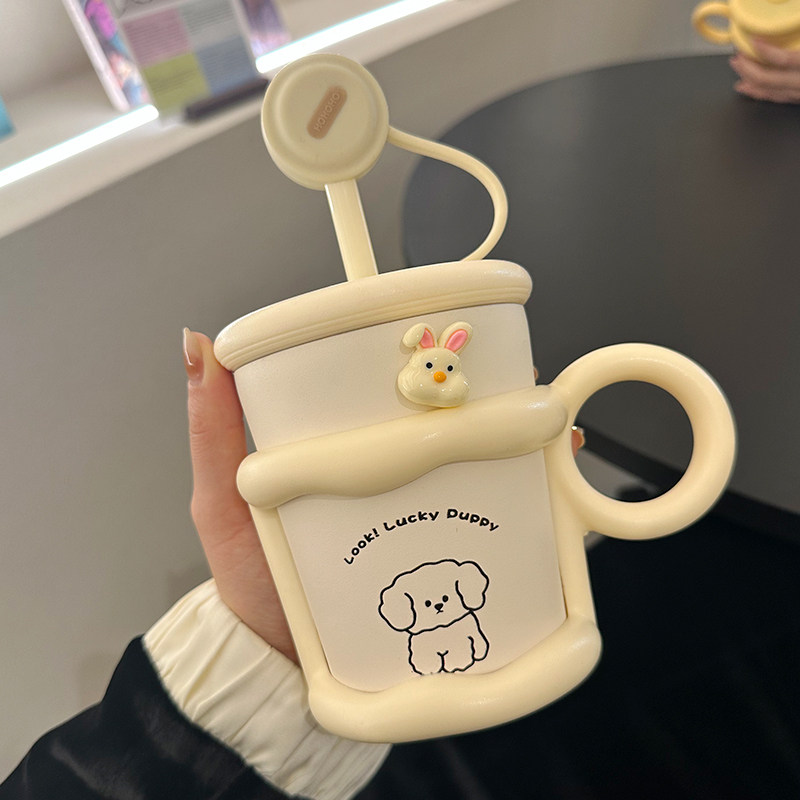 爱萌情侣马克杯日式带盖可办公室高颜值杯女生家用JFM陶瓷咖啡