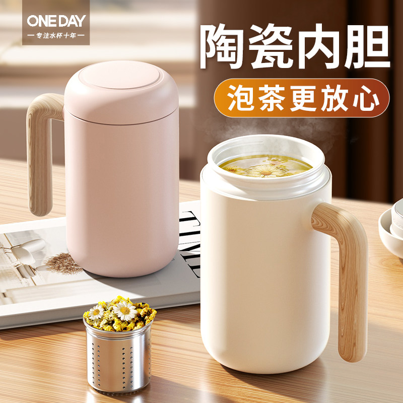 ONEDAY泡茶杯茶水分离陶瓷内胆保温杯女士生办公室冬季马克水杯子