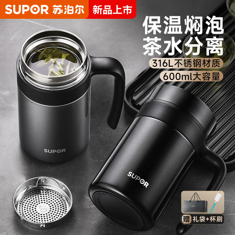苏泊尔保温杯男士不锈钢办公室泡茶水杯子大容量商务高档父亲礼物