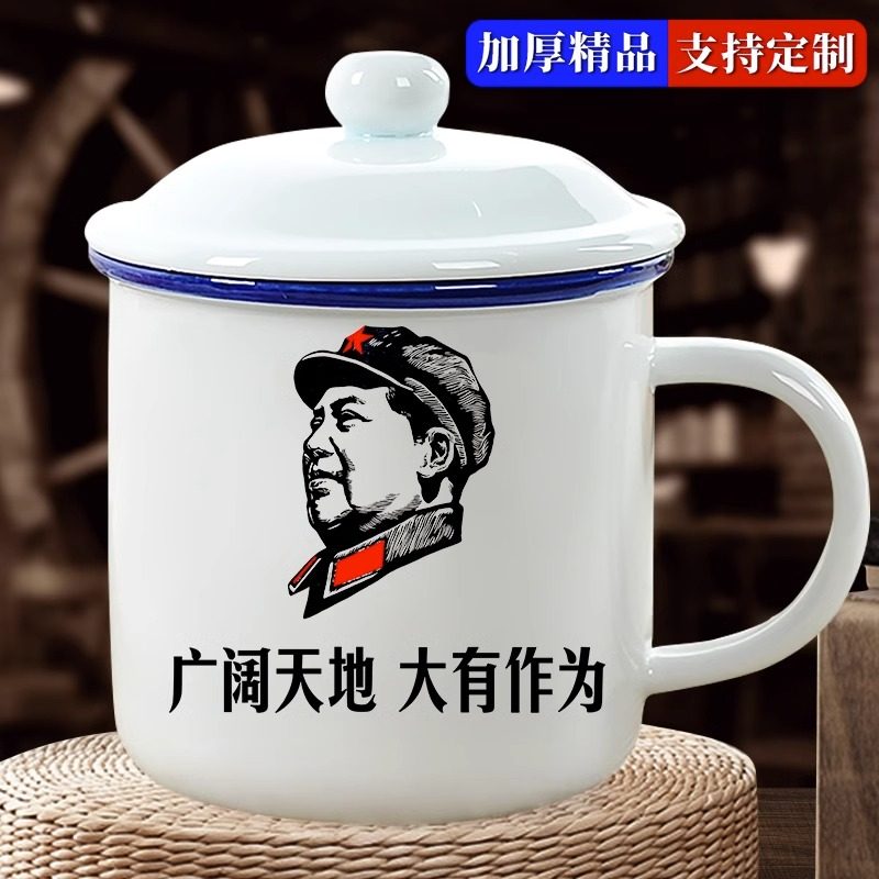 创意怀旧搪瓷杯子大容量办公室马克杯带盖茶杯陶瓷茶缸情侣水杯男