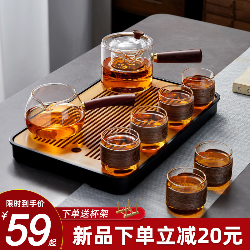 玻璃茶具套装家用茶盘小型办公室客厅防烫耐热泡茶壶喝茶功夫茶杯