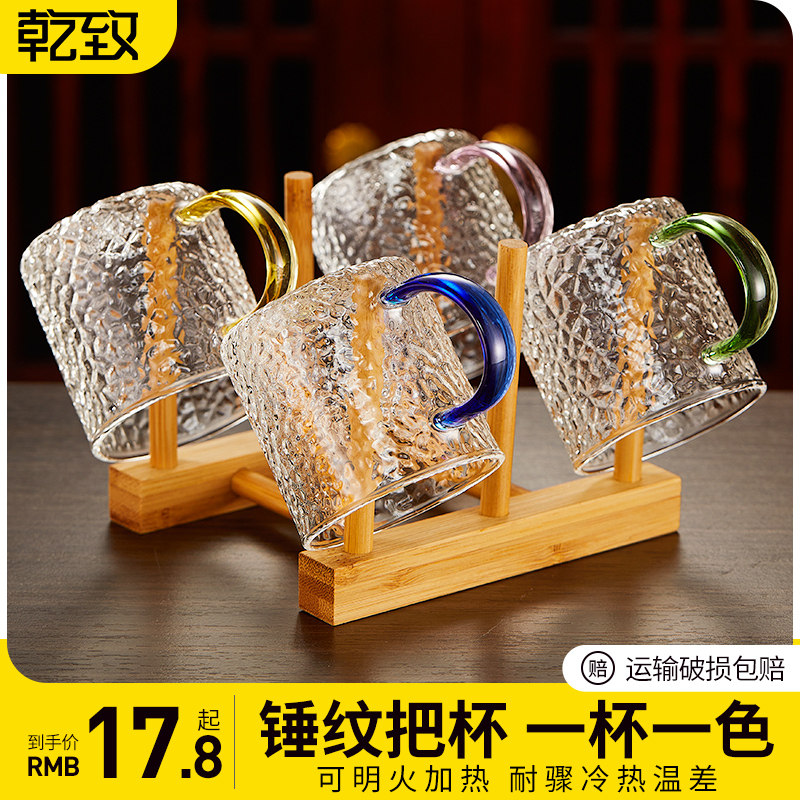 玻璃小茶杯耐热家用功夫茶具套装透明单个主人杯子加厚带把6只装