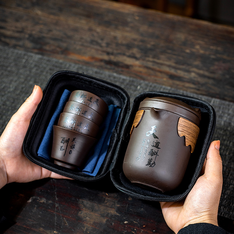 紫砂茶具快客杯一壶四收纳便携式小型套装功夫户外旅行游LOGO定制
