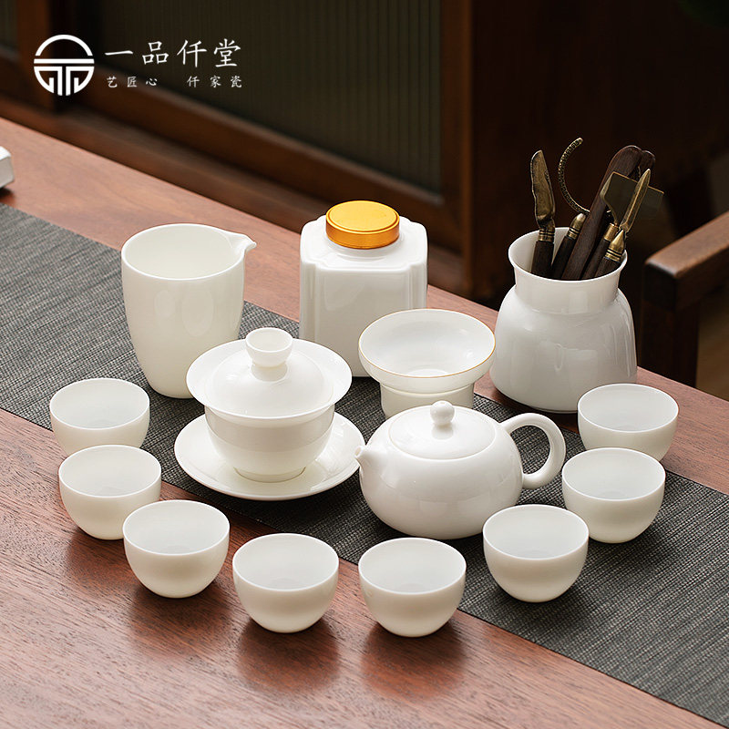 一品仟堂功夫茶具套装家用2023新款德化羊脂玉白瓷茶杯陶瓷泡茶壶