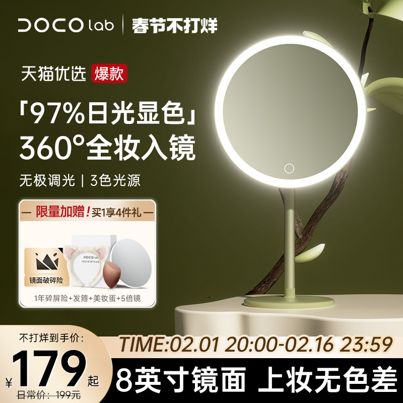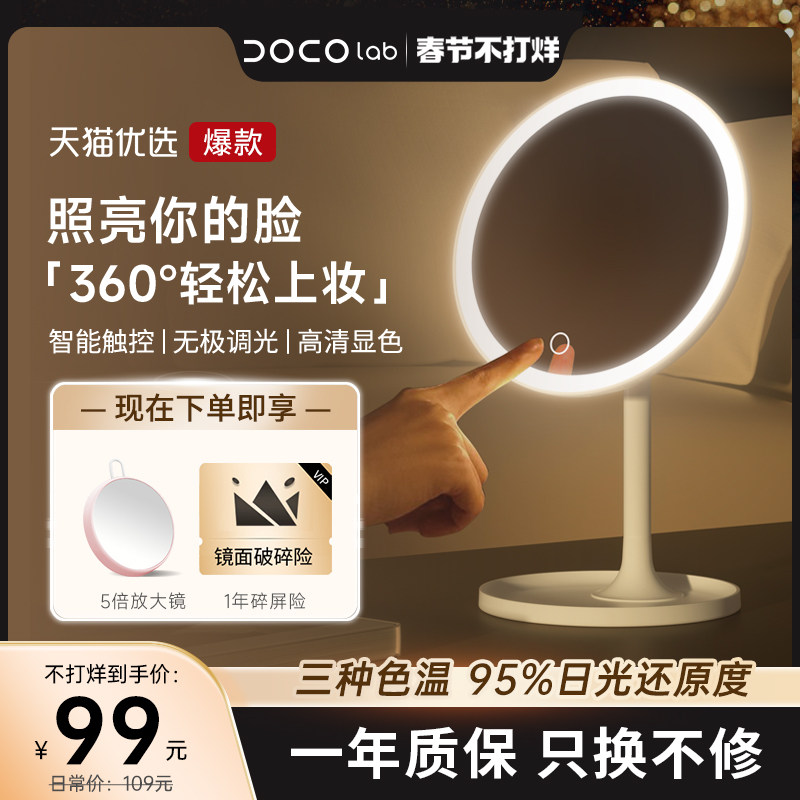DOCO化妆镜便携可折叠带灯家用台式桌面led补光旅行梳妆台镜子