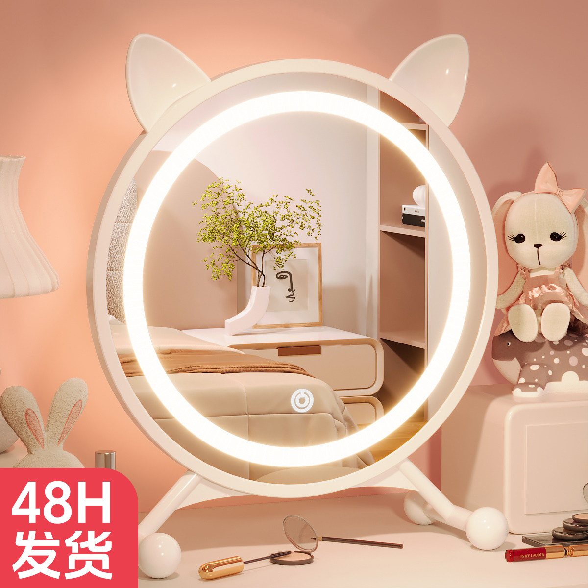 LED化妆镜台式带灯卧室梳妆台镜子智能桌面可爱高清网红梳妆镜
