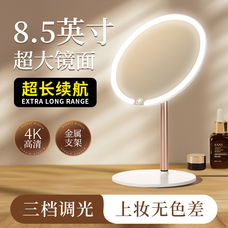 2023新款镜子化妆镜台式桌面带灯学生宿舍家用led补光镜轻奢高级