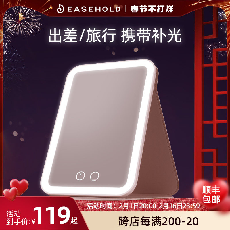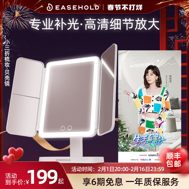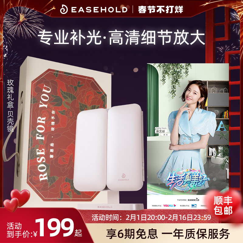 【情人节礼物】EASEHOLD贝壳化妆镜家用台式桌面带灯智能补光镜子