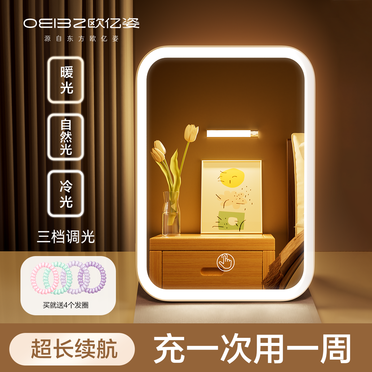 智能轻奢卧室桌面美妆化妆镜 网红台式led灯可旋转补光带灯梳妆镜