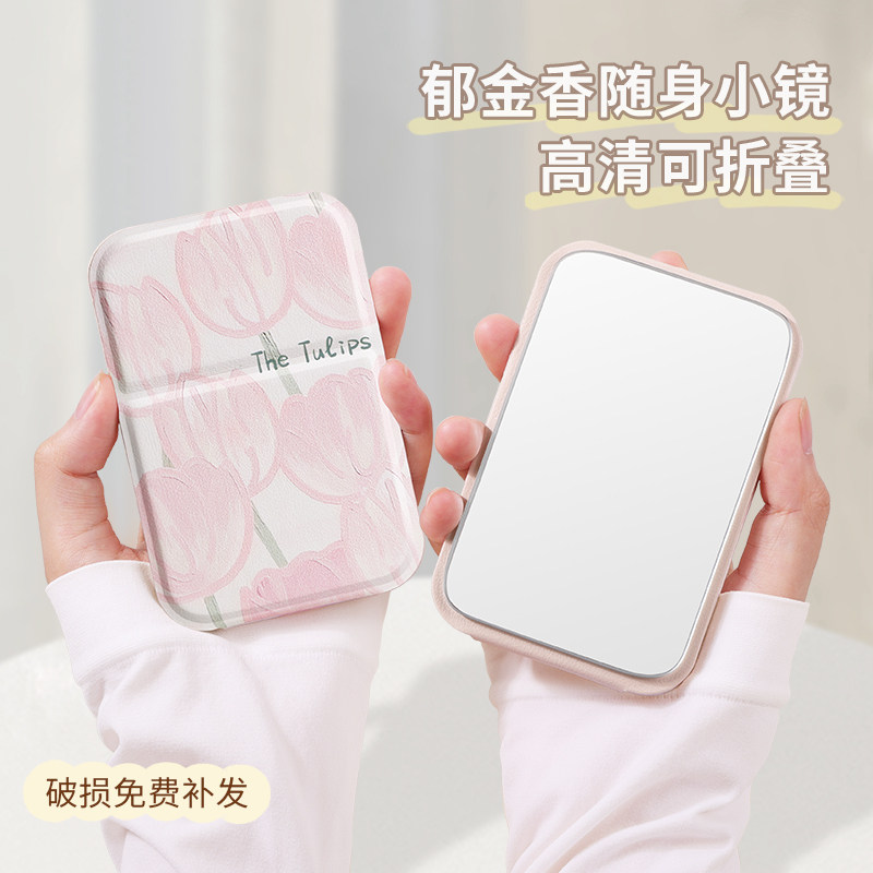 高颜值外出便携折叠手持迷你网红双面精致小镜子女随身携带化妆镜