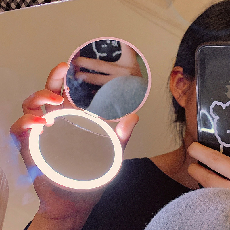随身便携迷你led化妆镜带灯双面小镜子小号手持折叠补妆镜小圆镜