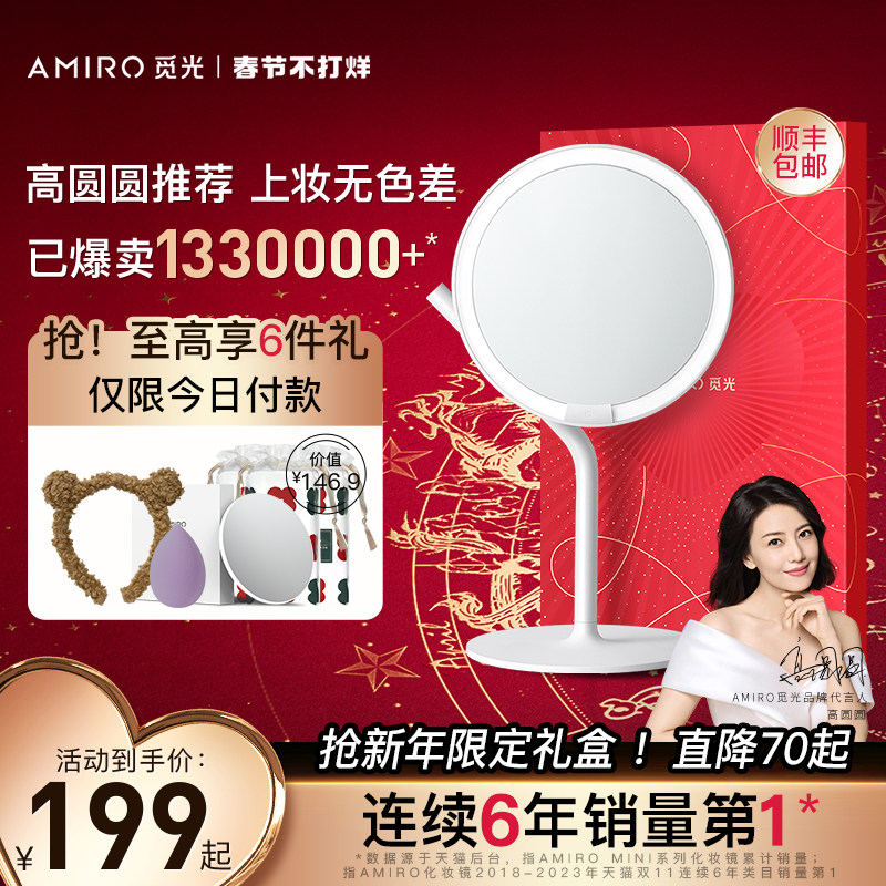 【情人节礼物】AMIRO觅光化妆镜mini台式led带灯桌面网红梳妆镜子