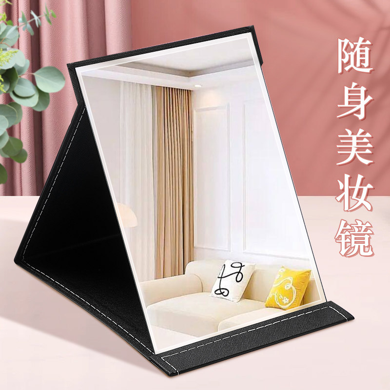 ins风折叠镜子大号梳妆台单面便携台式桌面可立学生宿舍化妆镜