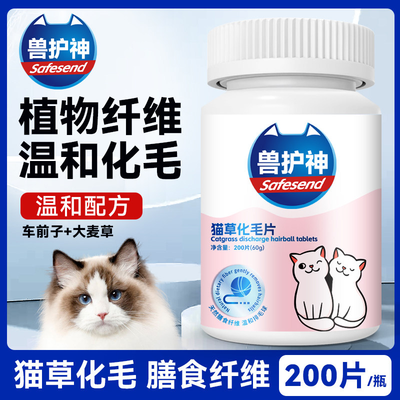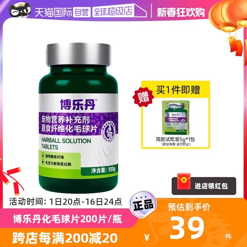 博乐丹化毛球片猫草片化毛膏补充维生素去毛球猫咪专用200片/瓶
