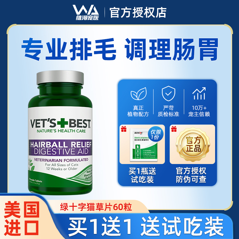 Vets Best绿十字猫草片猫咪泌尿片维倍思调理肠胃化毛膏化毛球片