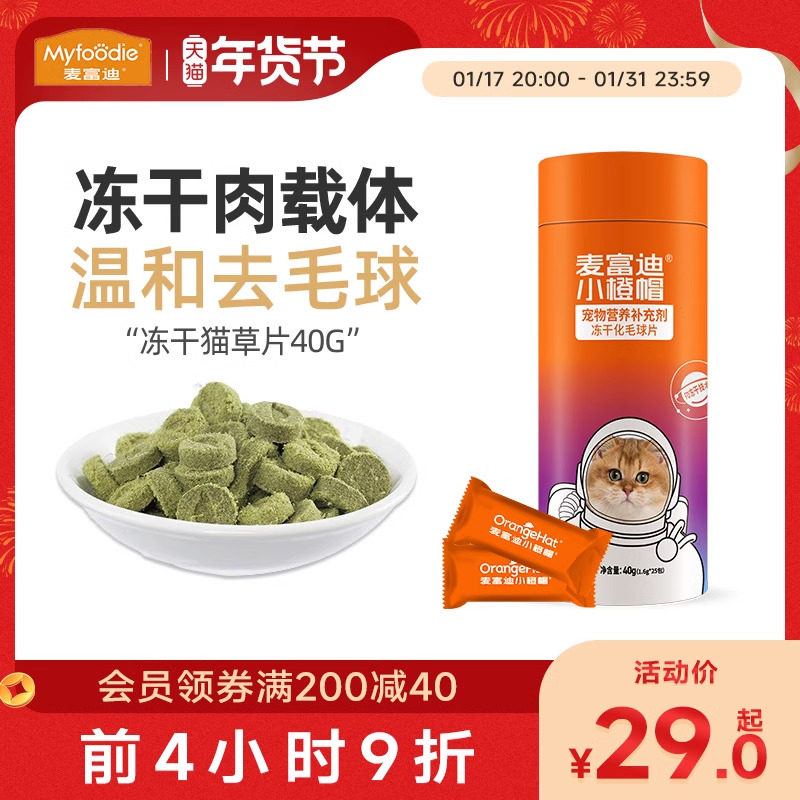 麦富迪小橙帽猫咪冻干猫草片40g成幼猫化毛膏温和排毛去毛吐毛球