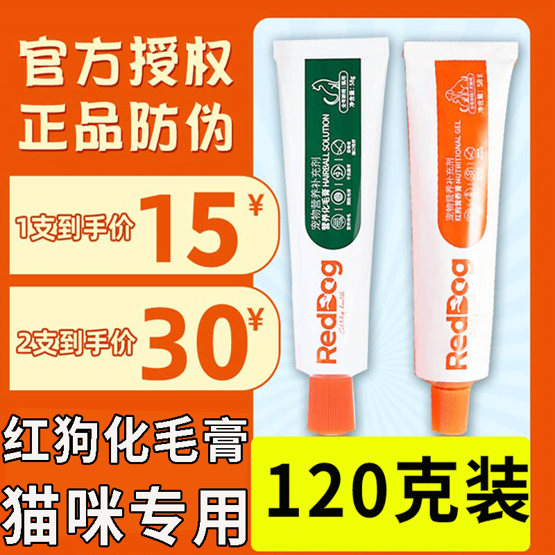 红狗化毛膏营养膏猫咪专用品成幼犬猫去毛球宠物化毛120g美毛补钙