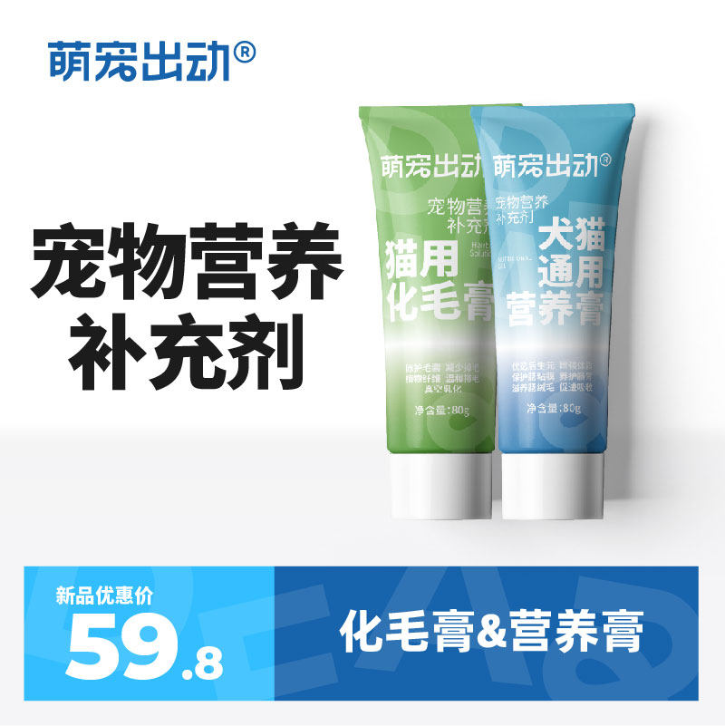 萌宠出动猫用化毛膏减少掉毛去毛球宠物狗狗营养膏维生素滋补80g