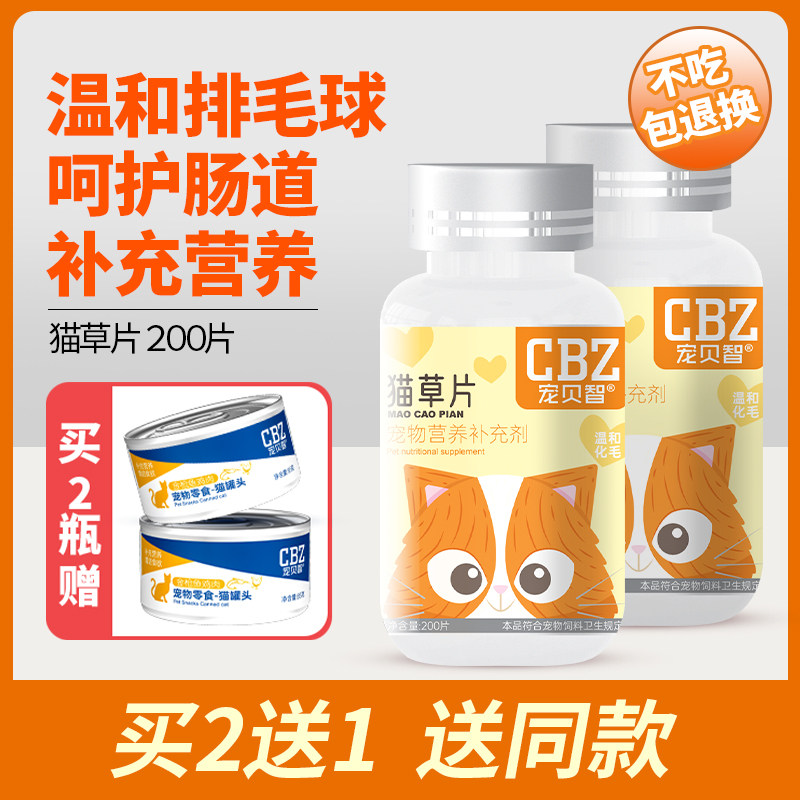 宠百利猫草片猫咪化毛球片化毛膏猫咪吐毛球化毛球猫草粒排毛猫用