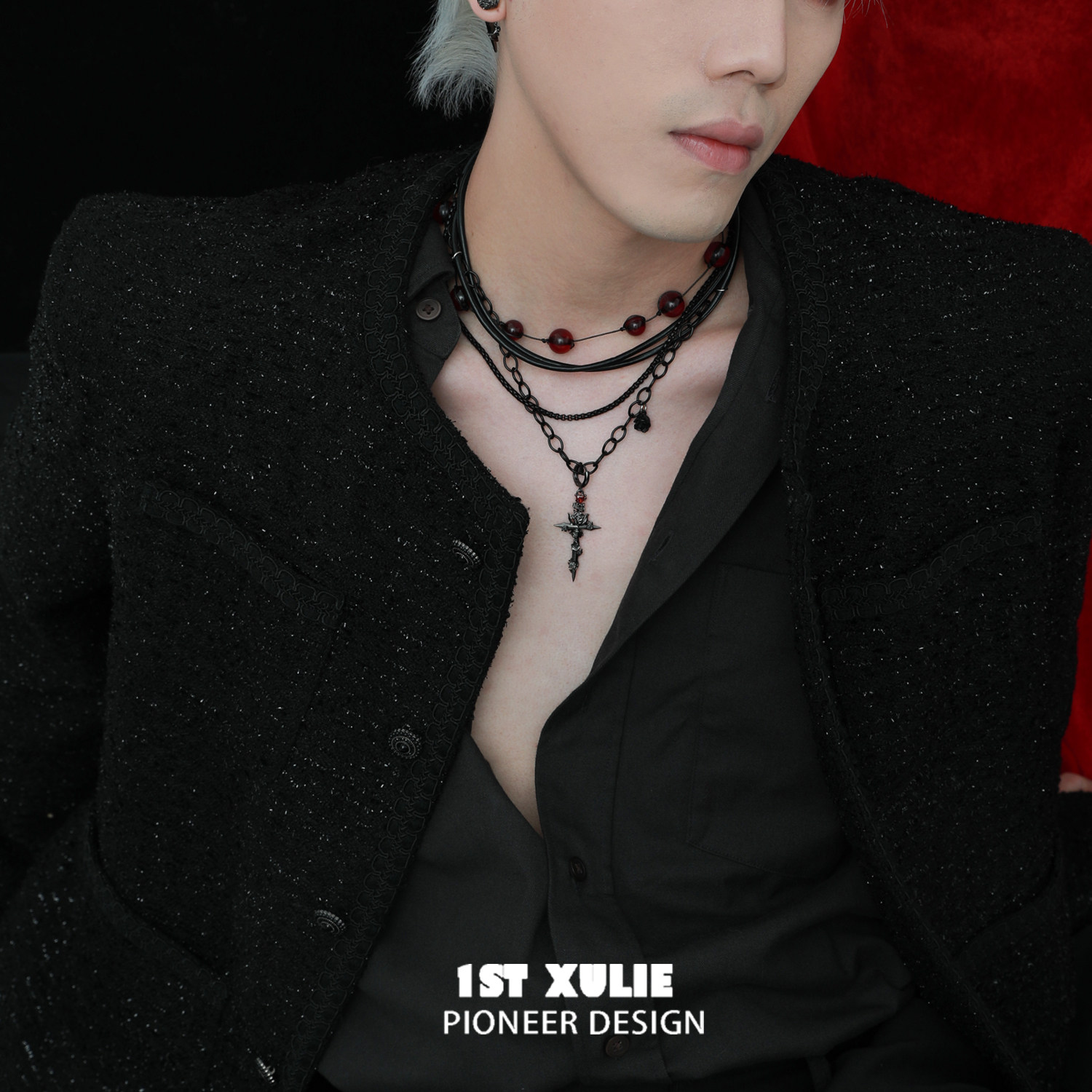 1STXULIE哥特十字架双层项链原创小众设计高级感暗黑锁骨链毛衣链