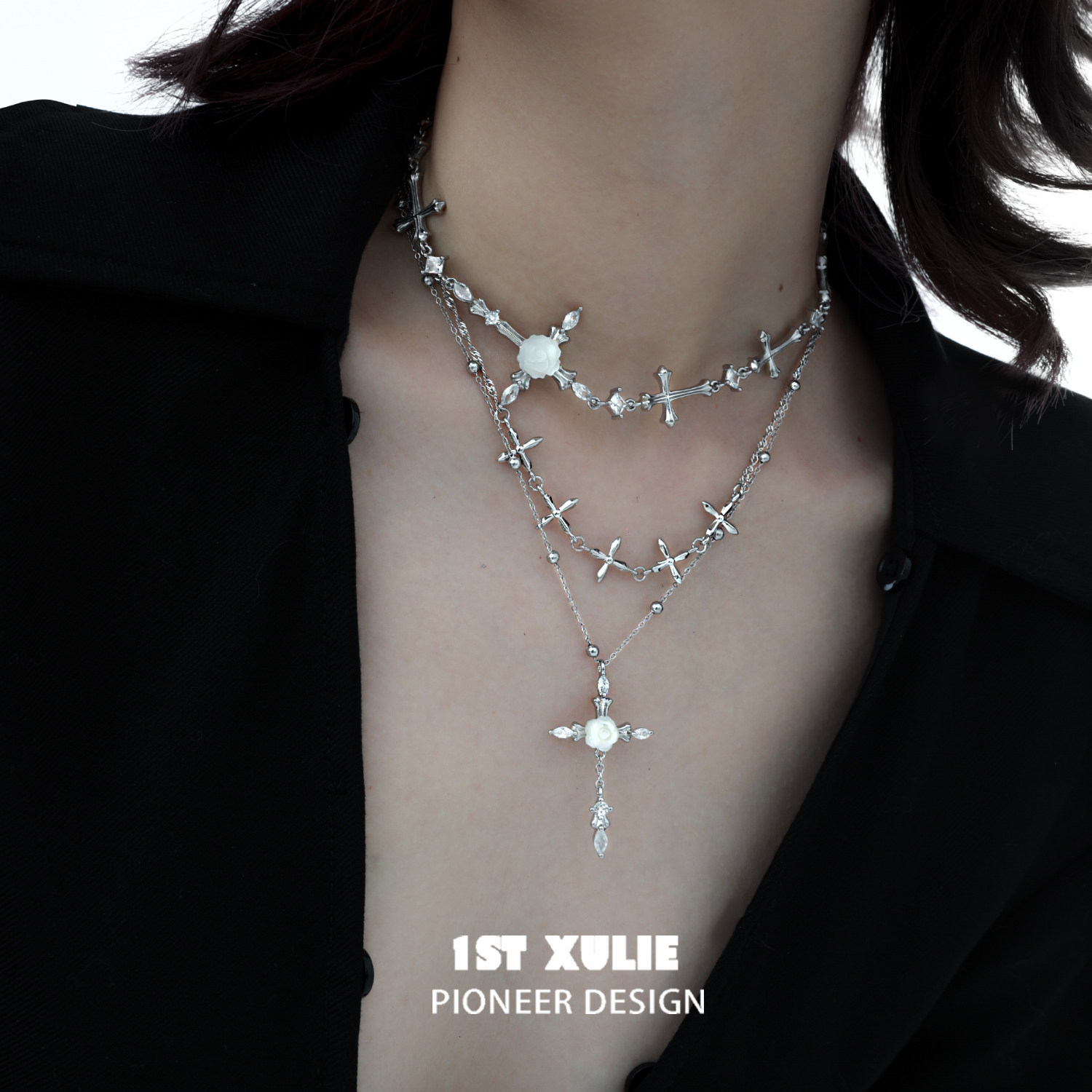 1STXULIE玫瑰信徒十字架项链原创小众设计高级感双层锁骨链颈链女