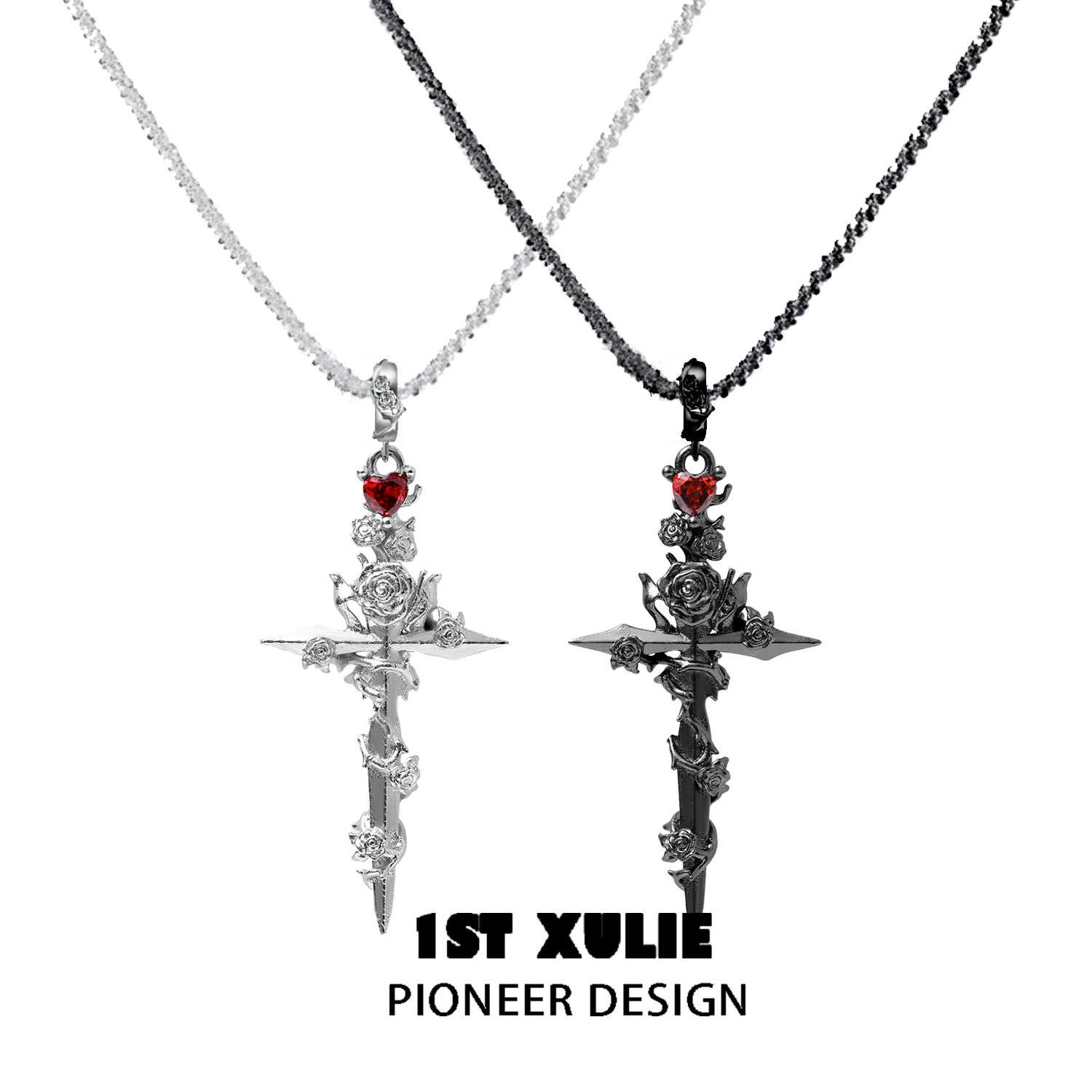 1STXULIE玫瑰信徒十字架抽拉项链原创小众设计高级感锁骨链毛衣链