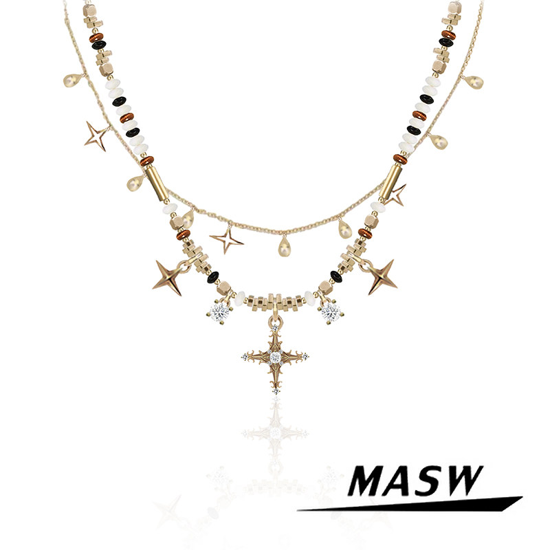 SUMIYAKI 十字架系列五金女孩中性双层项链女嘻哈百搭锁骨链