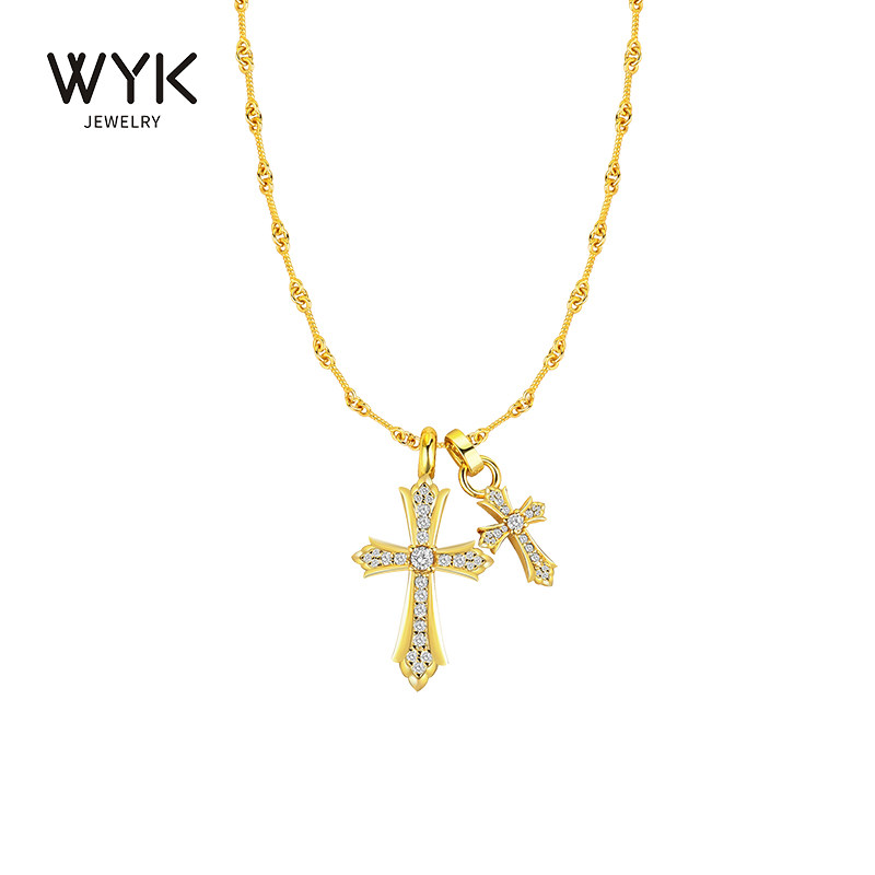 GRGR 18K金色镶钻十字架项链男嘻哈百搭美式满钻吊坠女锁骨链ins