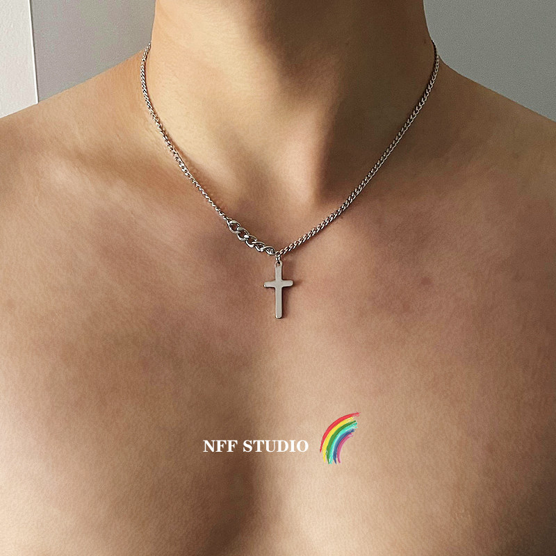 NFF方钻十字架锁骨链罗马钛钢原创设计钛钢项链男生百搭简约饰品