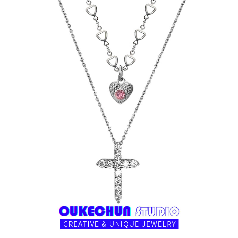 OUKECHUN爱心十字架项链女轻奢甜酷辣妹配饰ins冷淡风小众锁骨链