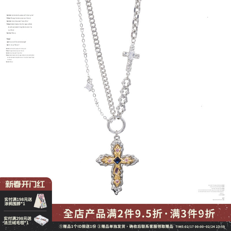 1JINN M2M 轻奢原创小众复古巴洛克风双层叠戴十字架项链毛衣链