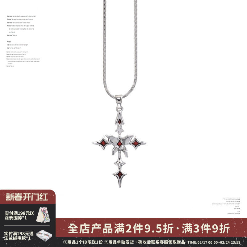 OUKECHUN红色双十字架项链女小众设计ins嘻哈甜酷轻奢毛衣链配饰