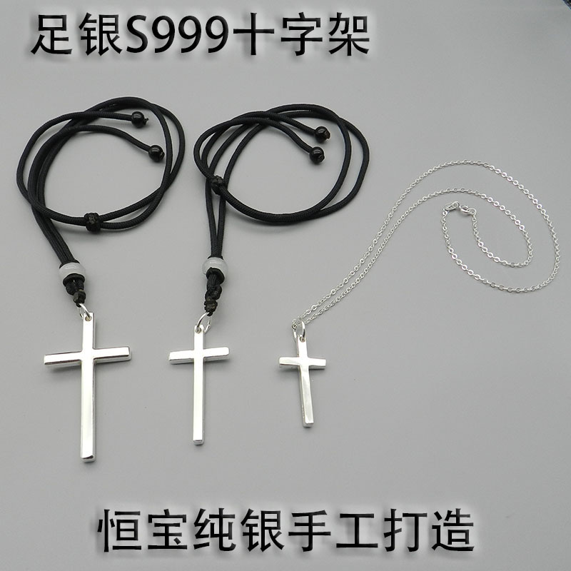 纯银复古做旧素银十字架项链个性简约风手工原创设计情侣吊坠银链