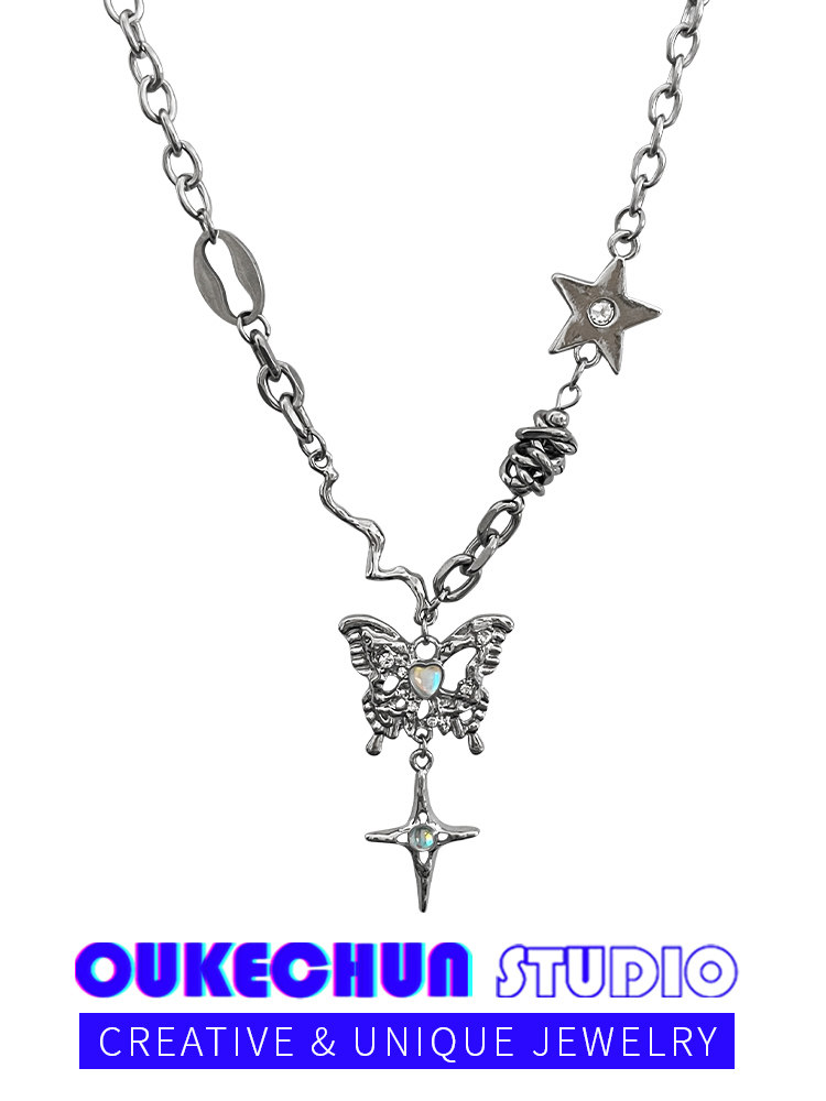 SUMIYAKI朋克蝴蝶项链 救赎之蝶 十字架长款卫衣穿搭小众毛衣链女