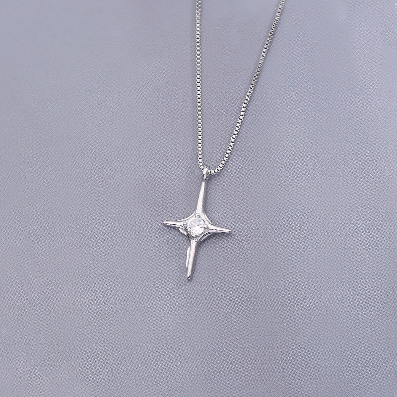 s925纯银十字架项链女2023年新款潮四芒星锁骨链气质冷淡风设计感